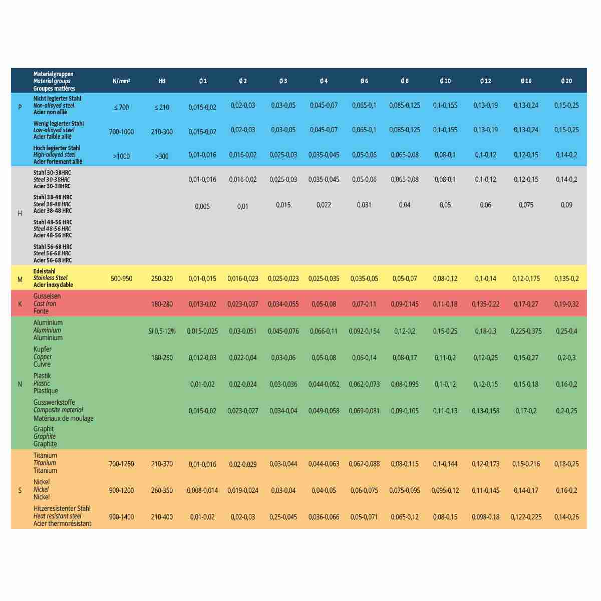 Drehzahl für den tatsächlichen Bohr-Durchm. verwenden (nicht generell für den Bohrer-Außen-Durchm.).